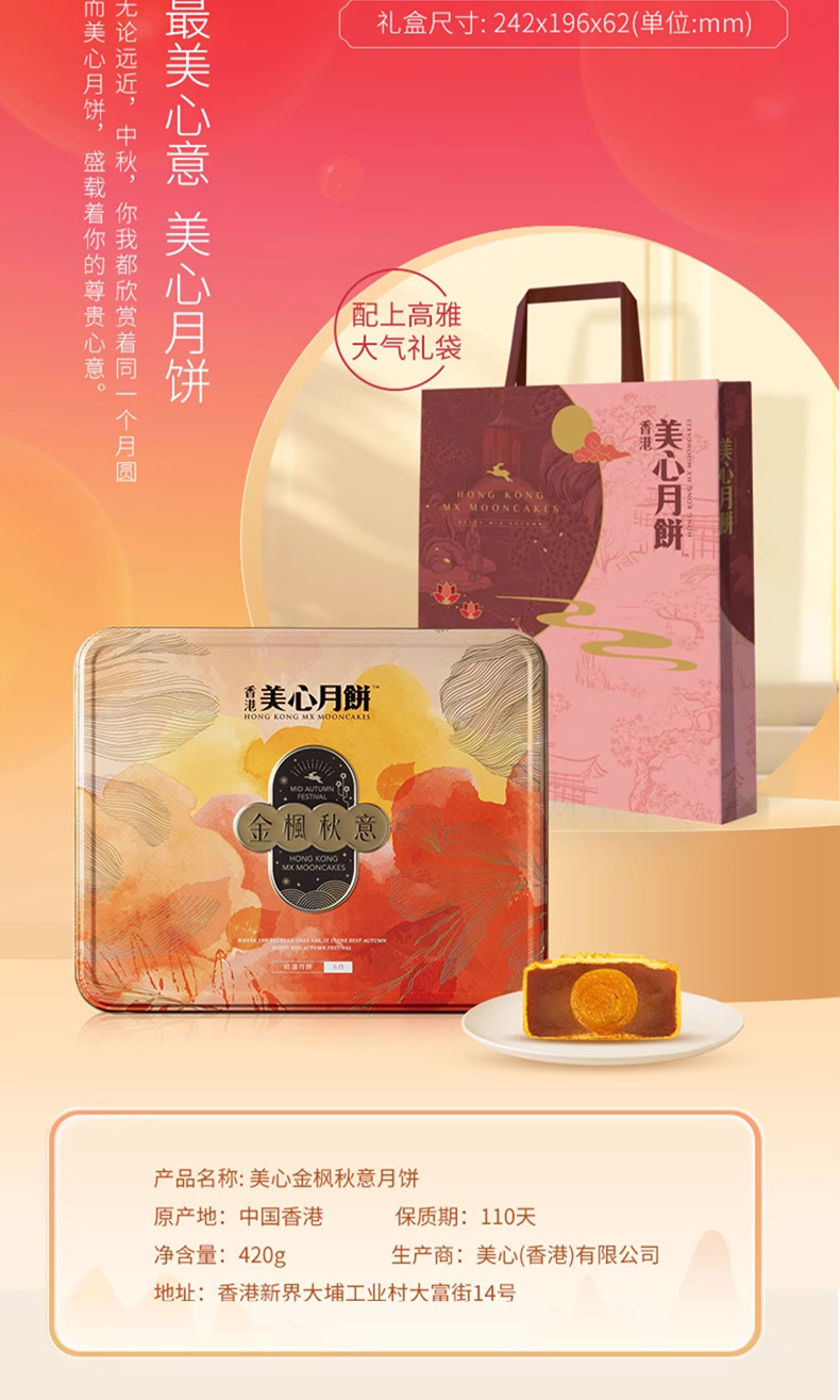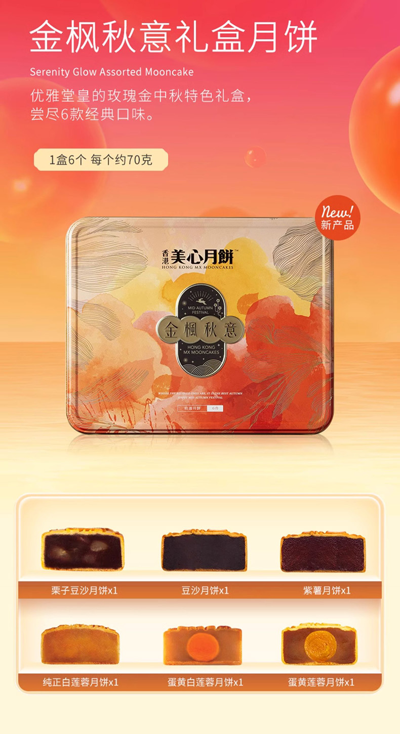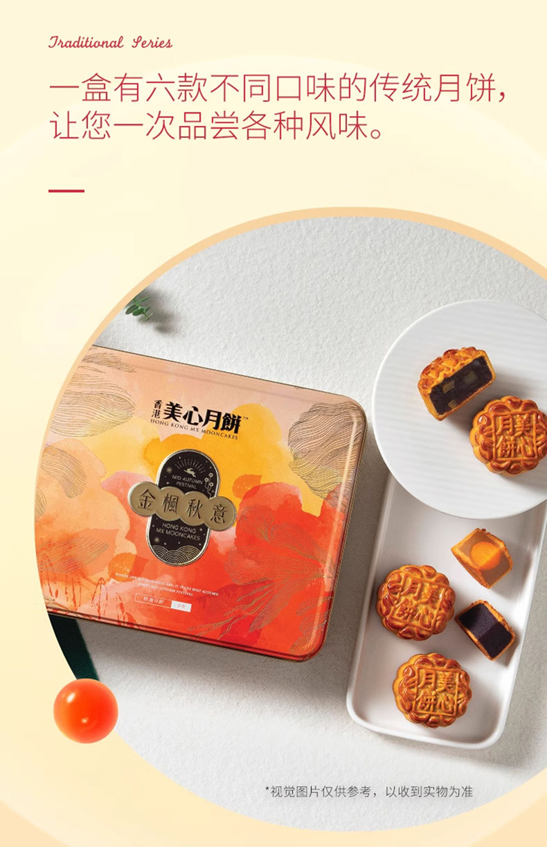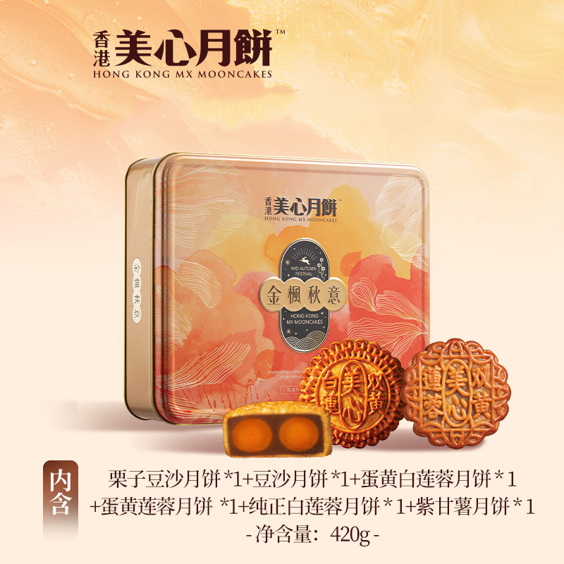 香港美心金枫秋意中秋节月饼礼盒 蛋黄豆沙莲蓉多口味组合港式糕点