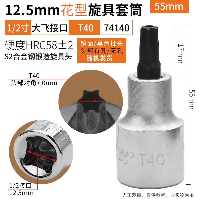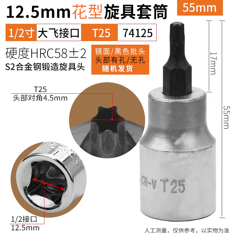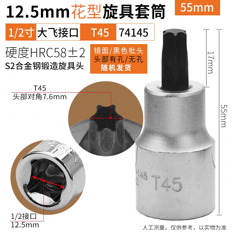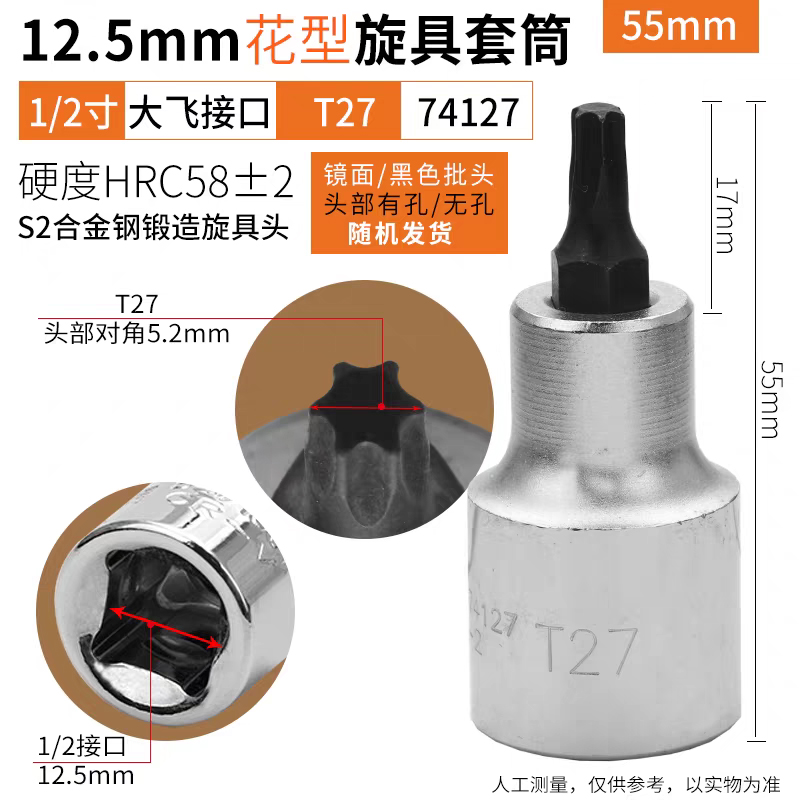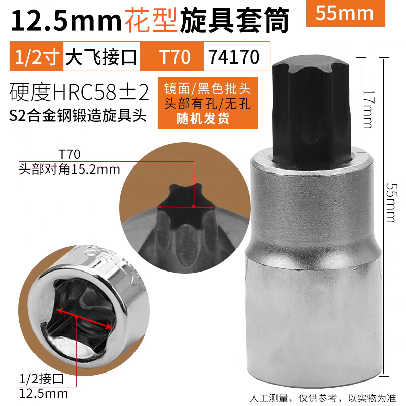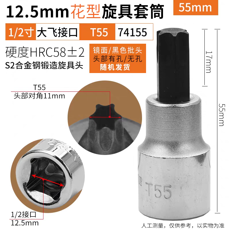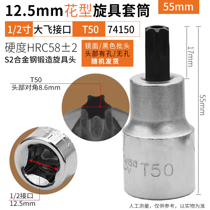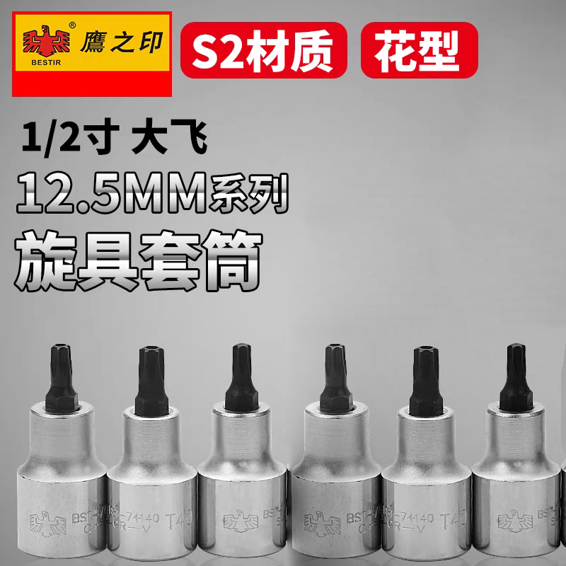 鹰之印12.5mm系列花型旋具套筒批头1/2大飞电动扳手套筒花形螺丝批头T25-T70
