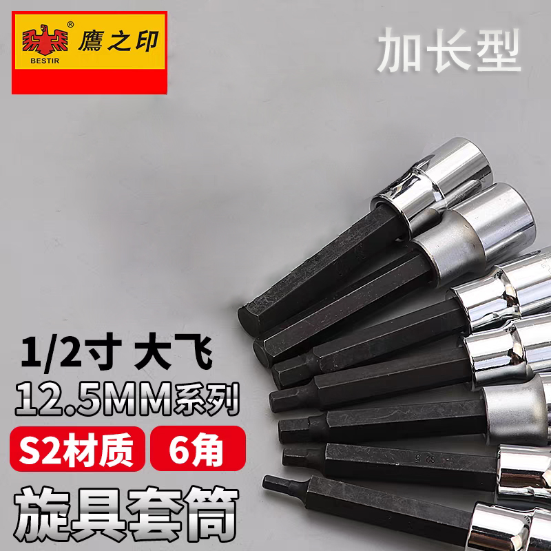 鹰之印12.5mm系列加长六角旋具套筒批头1/2大飞电动扳手套筒6角螺丝批头