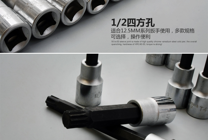 鹰之印12.5mm系列加长十二角旋具套筒批头1/2大飞电动扳手套筒12角梅花螺丝批头