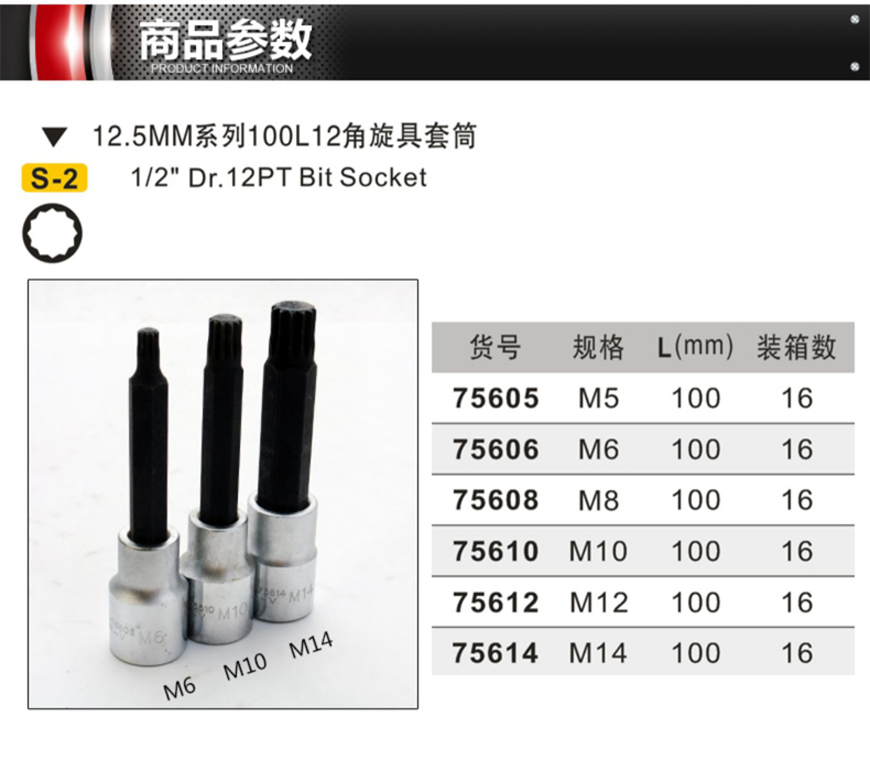 十二角1/2吋-M6*100mm(BST-75606)